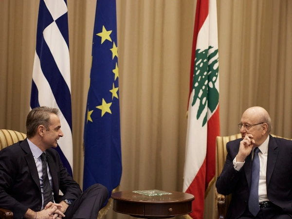 Ο Κυριάκος Μητσοτάκης βρίσκεται σε επίσημη επίσκεψη στον Λίβανο και τον πρωθυπουργό υποδέχθηκε στο αεροδρόμιο της Βηρυτού ο πρωθυπουργός Νατζίμπ Μικάτι.