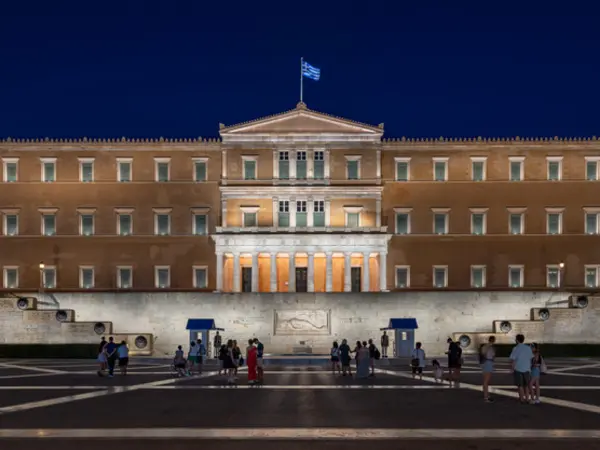 Με το νέο φωτισμό αναβαθμίστηκε αισθησιακά η νυχτερινή εικόνα του Μεγάρου της Βουλής και του περιβάλλοντος χώρου εντός ενός σύγχρονου πλαίσιού περιβαλλοντικής υπευθυνότητας και βιωσιμότητας.