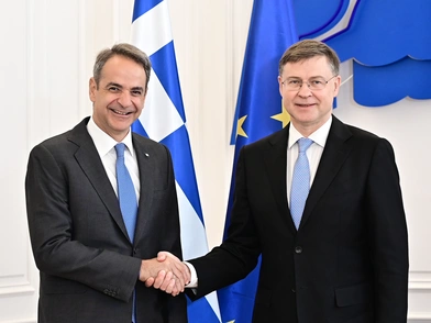 Ο Πρωθυπουργός Κυριάκος Μητσοτάκης συναντήθηκε στο Μέγαρο Μαξίμου με τον Ευρωπαίο Επίτροπο Οικονομίας και Παραγωγικότητας, Εφαρμογής και Απλούστευσης Βάλντις Ντομπρόβσκις.