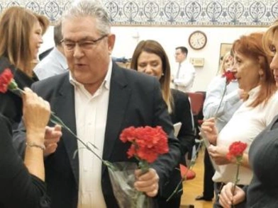 Ο γενικός γραμματέας και πρόεδρος της ΚΟ του ΚΚΕ, Δημήτρης Κουτσούμπας, με αφορμή την Παγκόσμια Ημέρα της Γυναίκας που εορτάζεται αύριο Σάββατο (8/3), προσέφερε λουλούδια στις κοινοβουλευτικές συντάκτριες.