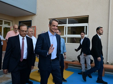 Ο κ. Μητσοτάκης έφτασε νωρίτερα το πρωί στο σχολείο, όπου τον υποδέχτηκαν παιδιά, εκπαιδευτικοί και ο ιερέας που τέλεσε τον αγιασμό. Ξεναγήθηκε στους ανακαινισμένους χώρους του σχολείου και στη συνέχεια ξεκίνησε η τελετή.