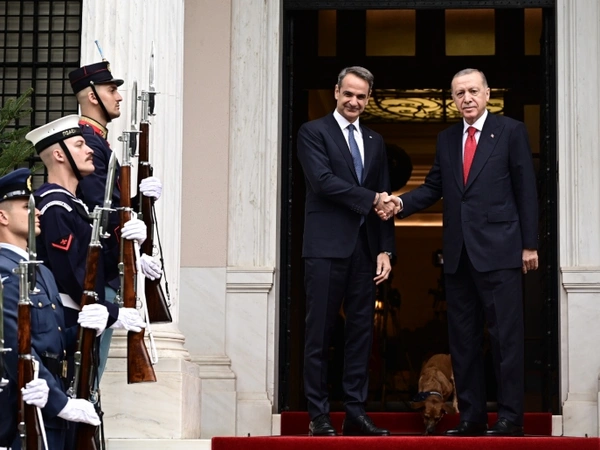 Ο Τούρκος πρόεδρος Ρετζέπ Ταγίπ Ερντογάν έφτασε λίγο μετά τις 12:00 στο Μέγαρο Μαξίμου όπου τον υποδέχθηκε θερμά και με χειραψία διαρκείας ο πρωθυπουργός, Κυριάκος Μητσοτάκης