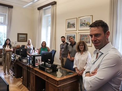 Οι συντάκτες υποδέχθηκαν στην αίθουσα που εργάζονται τον πρόεδρο του ΣΥΡΙΖΑ, ενημερώνοντάς τον ότι επισκέπτεται ένα από τα πιο σκληρά εργαζόμενα ρεπορτάζ του δημοσιογραφικού κλάδου, με τις μαραθώνιες συνεδριάσεις της Βουλής και αναμεταδόσεις τους, οι οποίες πολλές φορές υπερβαίνουν το 24ωρο συνεχούς εργασίας.