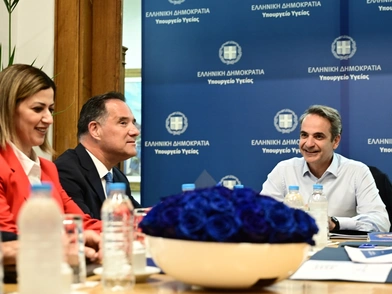 Σύμφωνα με το ΑΠΕ - ΜΠΕ. στην είσοδο του υπουργείου Υγείας τον υποδέχτηκαν ο υπουργός Υγείας Άδωνις Γεωργιάδης και η αναπληρώτρια υπουργός Υγείας Ειρήνη Αγαπηδάκη.