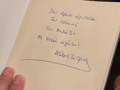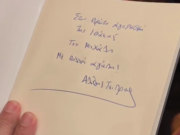 «Στον πρώτο αγοραστή της Ιθάκης, Μιχάλη, με πολλή αγάπη», αυτή είναι η αφιέρωση του Αλέξη Τσίπρα στον Μιχάλη, ο οποίος είχε ταξιδέψει από τα Τρίκαλα στην Αθήνα και ήταν ο πρώτος που αγόρασε την Ιθάκη.