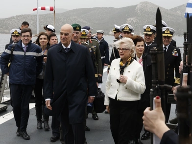 Ο υπουργός Εθνικής Άμυνας, Νίκος Δένδιας, υποδέχθηκε σήμερα, Πέμπτη (29/01) τη Γαλλίδα ομόλογό του, Κατρίν Βοτρέν, στη φρεγάτα «Κίμων», σε μία συμβολική κίνηση για τις ελληνογαλλικές σχέσεις.
