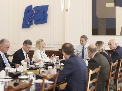 Ο πρωθυπουργός και πρόεδρος της Νέας Δημοκρατίας, Κυριάκος Μητσοτάκης, συναντήθηκε το μεσημέρι στο Μέγαρο Μαξίμου με τους ευρωβουλευτές της Νέας Δημοκρατίας.