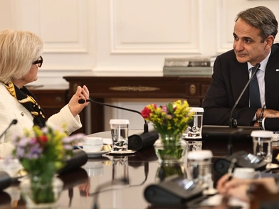 O Πρωθυπουργός Κυριάκος Μητσοτάκης συναντήθηκε στο Μέγαρο Μαξίμου με την Υπουργό Ενόπλων Δυνάμεων της Γαλλίας Catherine Vautrin.