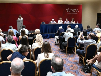 Στην συνεδρίαση δεν παραβρίσκεται ο απερχόμενος πρόεδρος του κόμματος, Αλέξης Τσίπρας.