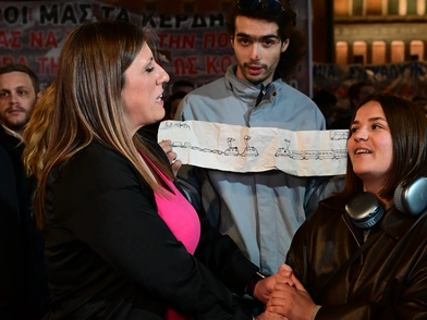 Ανάμεσα στο πλήθος στη συγκέντρωση διαμαρτυρίας για τα Τέμπη βρέθηκε η Ζωή Κωνσταντοπούλου, το βράδυ της Παρασκευής (7/3).