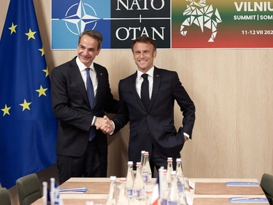 Με τον πρόεδρο της Γαλλίας, Εμανουέλ Μακρόν, συναντήθηκε ο πρωθυπουργός, Κυριάκος Μητσοτάκης, στο περιθώριο της Συνόδου του ΝΑΤΟ στο Βίλνιους της Λιθουανίας.