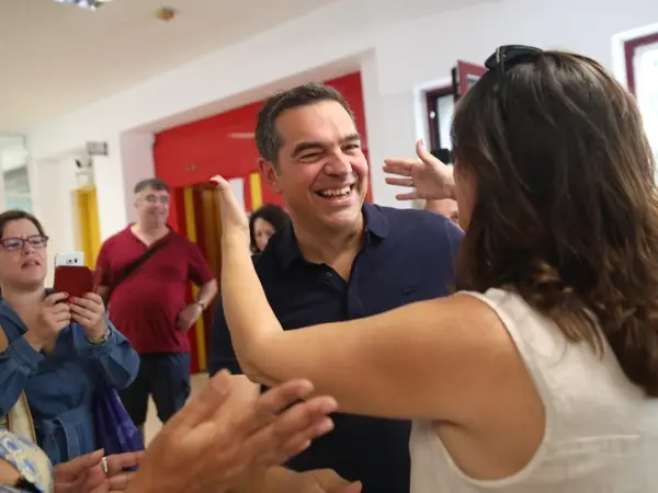 Χαρακτηριστικές είναι οι εικόνες με ψηφοφόρους να αγκαλιάζουν και να φιλούν τον Αλέξη Τσίπρα, ο οποίος φαινόταν ευδιάθετος και χαμογελαστός από την υποδοχή που δέχτηκε.