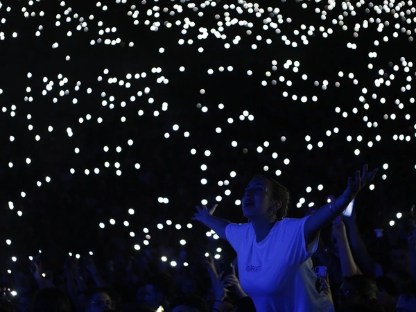 Φορτισμένο είναι το κλίμα στο Καλλιμάρμαρο όπου πραγματοποιείται η συναυλία - αφιέρωμα στα 57 θύματα του σιδηροδρομικού δυστυχήματος των Τεμπών.