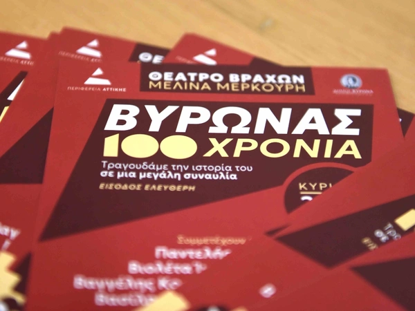 Ο Δήμος Βύρωνα συμπληρώνει φέτος τα 100 χρόνια ζωής και την πλούσια ιστορία του θα μας διηγηθούν μέσα από τραγούδια τους αγαπημένοι καλλιτέχνες υπό τη μουσική επιμέλεια του Γιάννη Παπαζαχαριάκη και τη συνοδεία 8μελούς ορχήστρας την Κυριακή 22 Σεπτεμβρίου στο θέατρο Βράχων «Μελίνα Μερκούρη».