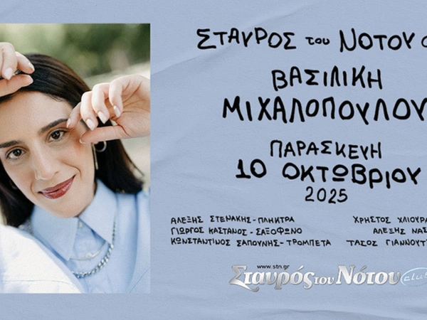 Η Βασιλική Μιχαλοπούλου μας προσκαλεί και φέτος στον Σταυρό του Νότου Club, την Παρασκευή 10 Οκτωβρίου! Η Βασιλική επιστρέφει με ανανεωμένη μπάντα και ρεπερτόριο, για να ξεσηκώσει το κοινό με τα τραγούδια και την δυναμική της ενέργεια στη σκηνή.