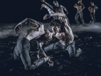 Η Κεντρική Σκηνή της Στέγης μεταμορφώνεται σε ένα τοπίο κοσμογονίας. Οι χορευτές και χορεύτριες αναμετρώνται με την αδάμαστη ομορφιά της φύσης: τον άνεμο, το νερό, το χώμα, τον καπνό, την ομίχλη, το φως, το σκοτάδι. Μαύρη άμμος, ασημόσκονη, πατάτες, νερό και κόλλα, κάτω από το κατάλληλο βλέμμα και με επεξεργασία, γίνονται έργα τέχνης. Με τέτοια υλικά καταπιάστηκαν ο εικονοκλάστης χορογράφος Damien Jalet και ο γλύπτης Kohei Nawa στα δύο έργα που παρουσιάζουν στο πλαίσιο του Onassis Dance Days 2025: τη χορογραφία Planet [wanderer] με ένα 8μελές ανσάμπλ από 4 έως 6 Απριλίου και την ταινία Mist με τους 18 χορευτές του Nederlands Dans Theater (NDT 1) στις 4 και 5 Απριλίου.