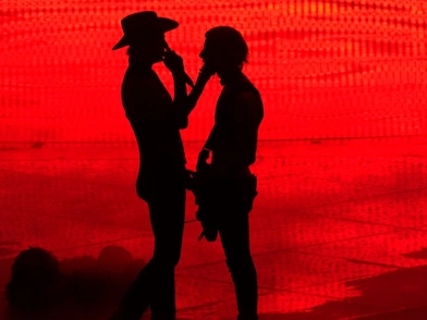 Ο Achille Lauro φλέρταρε με ένα κιθαρίστα με τον οποίο έδωσαν και φιλί στο στόμα, ενώ συνέχισε να τραγουδά πάνω σε έναν bucking bull με το κοινό να ενθουσιάζεται με τη σκηνική του παρουσία και την ενέργεια επί σκηνής.