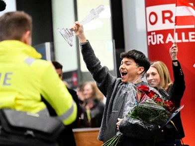 Ο JJ, ο μεγάλος νικητής της Eurovision 2025, επέστρεψε στην Αυστρία την Κυριακή και οι συγγενείς, φίλοι και θαυμαστές του τον περίμεναν στη Βιέννη όπου τον υποδέχθηκαν με επευφημίες για τη νίκη του στον Διαγωνισμό Τραγουδιού της Eurovision στη Βασιλεία.