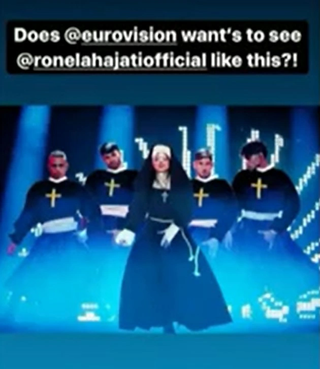 Φωτογραφίες από την πρώτη πρόβα της συμμετοχής της Αλβανίας στην Eurovision «κόπηκαν» επειδή θεωρήθηκαν προκλητικές. Τα στιγμιότυπα της Ρονέλα Χαγιάτι με τους χορευτές... εξαφανίστηκαν με φαν να υποστηρίζουν πως υπάρχει λογοκρισία στον διαγωνισμό τραγουδιού και την αλβανική πλευρά να σχολιάζει δημοσιεύοντας φωτογραφία με τη συμμετοχή ντυμένη με στολές που φορούν οι καλόγριες.