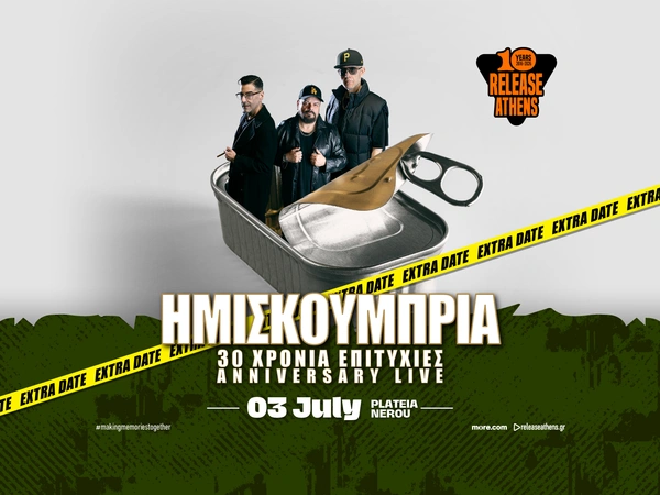 Μετά την εντυπωσιακή ανταπόκριση του κοινού και το ταχύτατο sold out της εμφάνισης των Ημισκουμπρίων στις 20 Ιουνίου, το Release Athens 2026 ανακοινώνει την προσθήκη δεύτερης ημέρας, την Παρασκευή 3 Ιουλίου, στην Πλατεία Νερού.