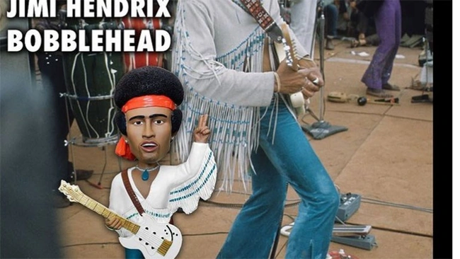 Με επίσημη άδεια και έγκριση από το estate του Τζίμι Χέντριξ, το κουκλάκι «Jimi Hendrix Bobble Buddy» απεικονίζει τον μουσικό να κάθεται φορώντας ανοιχτό μπλε Τζιν, πουκάμισο με κρόσια και πορφυρή μπαντάνα (ό,τι ακριβώς φορούσε εκείνες τις αξέχαστες δύο ώρες), κρατώντας την κιθάρα στο δεξί χέρι (ήταν αριστερόχειρας) και με το υψωμένο αριστερό να κάνει το σήμα «PEACE».