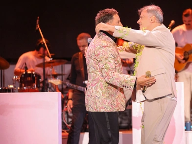 Του έστειλα μήνυμα και του έγραψα: "Φίλε, η Ταράτσα ήταν και είναι για σένα ανοιχτή αγκαλιά". Με παίρνει σε ένα δευτερόλεπτο και μου λέει ''Φοίβο, περίμενα πότε θα μου το πεις"», είπε ο Φοίβος Δεληβοριάς προτού καλωσορίσει τον αγαπημένο τραγουδιστή στη σκηνή του Θεάτρου Άλσους με τους θεατές να του χαρίζουν το πιο ζεστό χειροκρότημα.