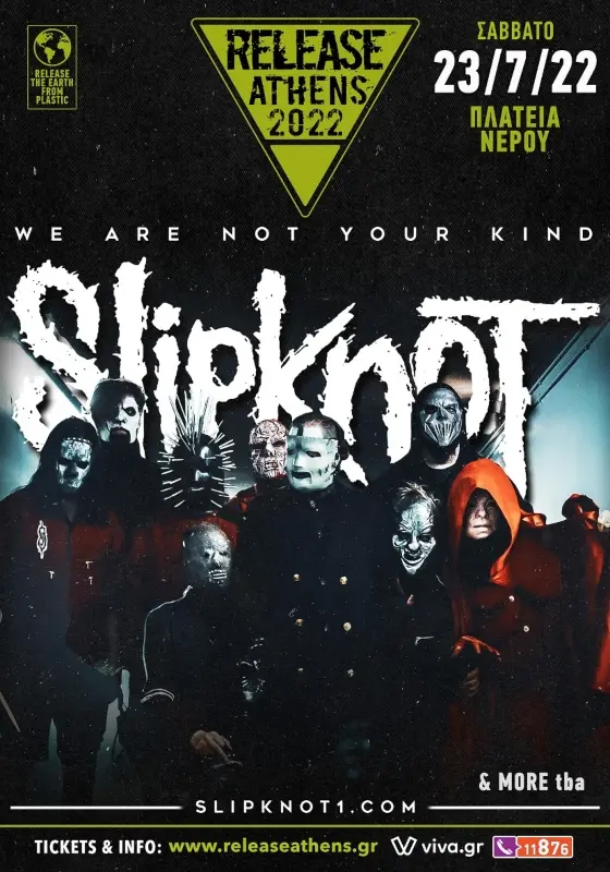 Επιστρέφουν στη χώρα μας, μετά από πολλά χρόνια, φέρνοντας στο Release Athens το εκπληκτικό show τους, σε μία φεστιβαλική εμπειρία επικών διαστάσεων που όμοιά της δεν έχουν ξαναδεί οι πιστοί Maggots! Άλλωστε, τα λόγια του Corey Taylor είναι ξεκάθαρα και δεν επιδέχονται καμία αμφισβήτηση: “We don’t play shows. We start wars.”