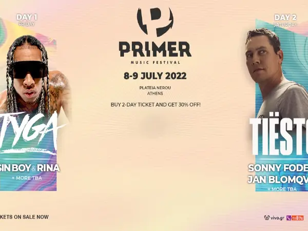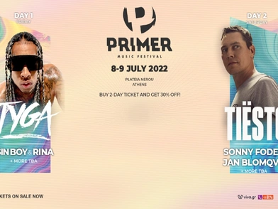 Ο TYGA θα είναι ο καλλιτέχνης που θα “κλείσει” την urban ημέρα του Primer Music Festival (Παρασκευή 8 Ιουλίου), παρουσιάζοντας όλες τις επιτυχίες από την πολυ-πλατινένια καριέρα του (“Taste”, “Juicy”, “Ayo”, “Ayy Macarena”, “Loco Contigo”, κλπ. Την ίδια ημέρα ο Sin Boy και η Rina θα δώσουν την μοναδική συναυλία τους για ολόκληρο το 2022 στη χώρα μας, ενώ σύντομα θα ανακοινωθούν και άλλα εντυπωσιακά acts.
