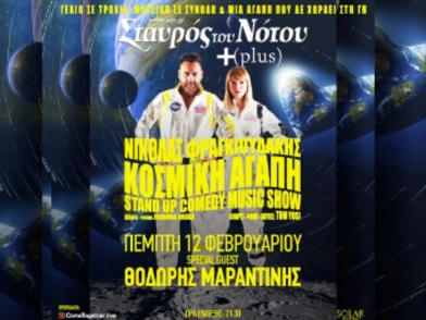 Stand-up, αυτοσαρκασμός, τραγούδια, κοινό που γελάει και ταυτίζεται — όλα μέσα σε ένα one-of-a-kind σύμπαν γεμάτο αστερισμούς και γέλια.