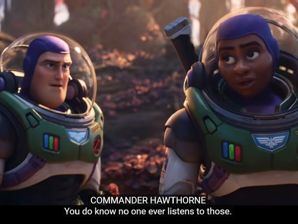 Στην ταινία, όπου ο Κρις Έβανς δίνει την φωνή του στον πρωταγωνιστή Buzz Lightyear, υπάρχει μια σκηνή, κατά την οποία η Hawthorne -χαρακτήρας στην οποία δίνει την φωνή της η Uzo Aduba - φιλά την σύντροφό της. Σύμφωνα με τους παραγωγούς της ταινίας, πρόκειται για μία καθοριστική σκηνή, που δείχνει στον Lightyear όλα όσα έχει θυσιάσει για χάρη της αποστολής του.