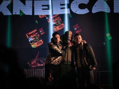 Με αυτό το διάλογο, ξεκινά κάπως παράδοξα η ιστορία των Kneecap στο δυτικό Μπέλφαστ, του πιο αμφιλεγόμενου τρίο της ιρλανδικής χιπ-χοπ σκηνής. Ένα γκρουπ που φτύνει ρίμες με πολιτικό και κοινωνικό στίχο ενάντια στο κατεστημένο, για να προστατεύσει την Ιρλανδική γλώσσα, να «εκδιώξει» τους βρετανούς και να υψώσει ανάστημα απέναντι στην εξουσία και την αστυνομοκρατία.