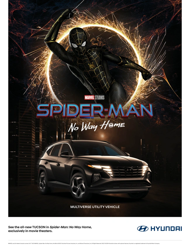Με αφορμή την πρεμιέρα της ταινίας «Spider-Man: No Way Home» στους κινηματογράφους στις 16 Δεκεμβρίου 2021, η Hyundai Motor Company ξεκίνησε πρόγραμμα προώθησης που περιλαμβάνει μια τηλεοπτική διαφήμιση και ποικίλες ψηφιακές προωθητικές δραστηριότητες σε παγκόσμιο επίπεδο. Η καμπάνια προέρχεται από την παγκόσμια διαφημιστική συνεργασία της Hyundai Motor με τη Sony Pictures που ξεκίνησε τον Μάιο του 2020 για να αναδείξει το ανθρωποκεντρικό όραμα της εταιρείας για την κινητικότητα μέσω των προϊόντων και των τεχνολογικών καινοτομιών της.