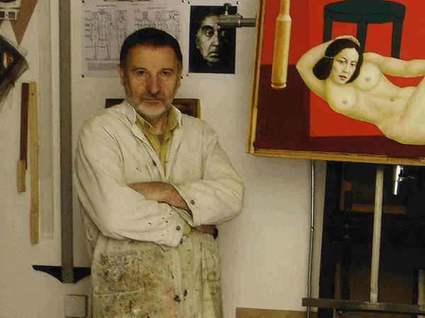 Έκανε επίσης σπουδές σκηνογραφίας και διακοσμητικής. Αποφοίτησε το 1967. Την περίοδο 1967-1973 ταξίδεψε σε διάφορες χώρες της Ευρώπης όπου επισκέφτηκε μουσεία και μελέτησε τα ρεύματα της σύγχρονης τέχνης. Μελέτησε επίσης την αρχαία ελληνική, τη βυζαντινή και τη λαϊκή τέχνη. Παρουσίασε την πρώτη του ατομική έκθεση στην Αθήνα (Καλλιτεχνικό Πνευματικό Κέντρο "Ώρα", 1982). Τόσο στο ζωγραφικό όσο και στο χαρακτικό του έργο, κύριο θεματικό στοιχείο είναι το γυμνό γυναικείο σώμα ενώ σπανιότερα συναντάται το ανδρικό σώμα. Στη ζωγραφική του χρησιμοποιεί ως επί το πλείστον ακρυλικά και λάδια. Οι μορφές αποδίδονται μερικές φορές αποσπασματικά ή με ανατομικές αυθαιρεσίες. Έχουν ζωηρά επίπεδα χρώματα και καθαρά σχήματα, όπου κυριαρχούν οι καμπύλες. Οι φιγούρες συχνά συνοδεύονται από αφαιρετικά στοιχεία με έντονο γεωμετρικό χαρακτήρα, που καθορίζουν το φόντο. Η προσωπική γραφή του καλλιτέχνη έχει διαμορφωθεί με την αφομοίωση κυβιστικών, εξπρεσιονιστικών και σουρεαλιστικών στοιχείων, αλλά εμπεριέχει και αναφορές στη γεωμετρική αφαίρεση, καθώς και στην αγγειογραφία της αρχαιότητας. Το περιεχόμενο των έργων του, προβάλλει κυρίως έναν προβληματισμό για το φαινόμενο της ζωής της γονιμότητας και του θανάτου.
