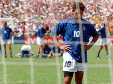 Στο Μουντιάλ του 1994 ήταν η ώρα του. Η Ιταλία θεωρείται ένα από τα μεγάλα φαβορί για την κατάκτηση της κούπας και ο Μπάτζιο, παιχνίδι με παιχνίδι δείχνει πως αυτός είναι ο φυσικός ηγέτης της ομάδας. Θέλει να κάνει το όνειρό του πραγματικότητα. Να γίνει ο νέος Πάολο Ρόσι της Ιταλίας. Τραυματίζεται στον ημιτελικό αλλά ούτε καν που διαπραγματεύεται τη συμμετοχή του στον τελικό με τη Βραζιλία. Το ματς οδηγείται στην παράταση και από εκεί στα πέναλτι. Το τελευταίο χτύπημα για την Ιταλία το κάνει εκείνος. Και το χάνει. Και το χάνει με πάταγο. Η μπάλα αντί για τα δίχτυα βρέθηκε στον ουρανό της Καλιφόρνια. Αυτή ήταν η κορύφωση της καριέρας του. Η κορυφαία στιγμή. Η κορυφαία τραγωδία.