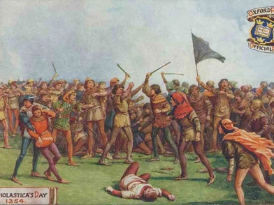 Town and Gown! Έτσι ονόμαζαν στην Οξφόρδη θα συχνά επεισόδια ανάμεσα σε ντόπιους και φοιτητές. Η συμβίωση των δυο πλευρών, μόνο εύκολη δεν ήταν. Στις 10 Φεβρουαρίου 1355, ημέρα που άπαντες γιόρταζαν την Αγία Σχολαστική, τίποτα δεν προμήνυε όλα αυτά που θα ακολουθούσαν. Η ζωή στην πόλη, εκείνη την περίοδο, κυλούσε χωρίς εντάσεις και με μια χαλαρή διάθεση (εξαιτίας της γιορτής της Αγίας Σχολαστικής). Το τελευταίο χρονικό διάστημα ανάλογα περιστατικά είχαν - σε μεγάλο βαθμό - περιοριστεί.