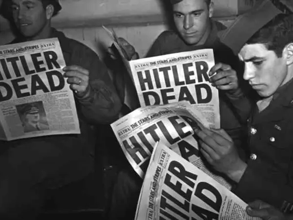 Την 1η Μαΐου, ο θάνατος του Χίτλερ ανακοινώθηκε επίσημα από το γερμανικό ραδιόφωνο. Οι Γερμανοί, βέβαια, δεν άκουσαν πως ο «Φύρερ» τους αυτοκτόνησε αλλά πως είχε πέσει μαχόμενος κατά των μπολσεβίκων και υπέρ της Γερμανίας.