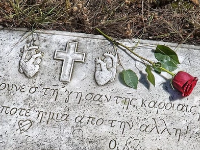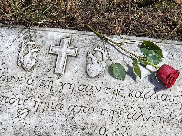 Εκεί μέχρι σήμερα υπάρχει η εξής πλάκα: «Καρδιαίς, αν σμίξουνε στη γη σαν τις καρδιαίς μας πάλι / Να μη χωρίσουν ποτέ η μία από την άλλη». Υπογράφεται: «Οι εν ουρανώ ερασταί Μαίρη και Μιχαήλ» με ημερομηνία «Μηνί φεβρουαρίω φθίνοντι εν 1893 έτει».