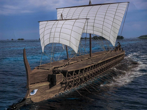 Όταν ο περσικός στόλος κινήθηκε εναντίον του ελληνικού, τα ελληνικά πλοία κινήθηκαν ανάποδα, κωπηλατώντας συντεταγμένα μέχρι την ακτή της Σαλαμίνας.