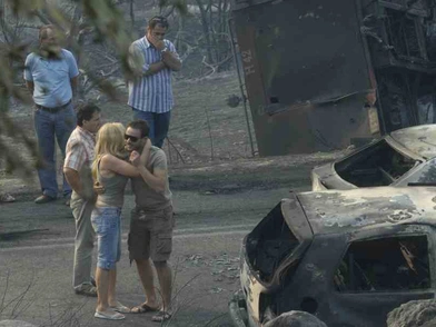 Ο ανιψιός της ήταν αυτός που πρώτος είδε καπνούς να βγαίνουν. Τα μέλη της οικογένειας προσπάθησαν να σβήσουν τη φωτιά με όσα μέσα είχαν. Η φωτιά, ωστόσο, γρήγορα έκαψε τη μικρή αποθήκη και ανενόχλητη βγήκε έξω. Αρχικά έκαψε μια συκιά, ξερά χόρτα, κάτι εγκαταλελειμμένα κτίσματα μέχρι που τελικά βγήκε στο δρόμο. Ο δυνατός αέρας την έσπρωχνε όλο και πιο γρήγορα. Όταν πέρασε τον δρόμο είχε μπροστά της μόνο άκαυτο δάσος.