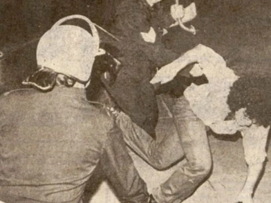 Οι συγκεντρωμένοι έκαναν και αυτοί μερικά βήματα προς τον φραγμό και σταμάτησαν. Οι δυο πλευρές ήταν κοντά αλλά δε φάνηκε πως θα δινόταν συνέχεια. Μέσα σε ελάχιστες στιγμές, ωστόσο, τα πάντα άλλαξαν δραματικά.