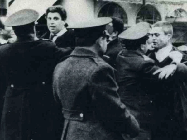 Μέσα σε ελάχιστο χρόνο ξεσπούν άγριες συμπλοκές μεταξύ αστυνομικών και διαδηλωτών. Οι συγκρούσεις είναι σώμα με σώμα. Ανάμεσα στους διαδηλωτές που συγκρούονται με τους αστυνομικούς είναι και ο βουλευτής της ΕΔΑ και πρόεδρος της νεολαίας «Λαμπράκη», Μίκης Θεοδωράκης ο οποίος χτυπιέται βάναυσα. Ξύλο, τραυματισμοί και συλλήψεις σημαδεύουν τους εορτασμούς εκείνης της ημέρας με την κυβέρνηση να κάνει λόγο για «οχλοκρατική συγκέντρωση» και να δικαιολογεί την αστυνομική βία και την αντιπολίτευση να καλεί τον λαό σε αντίσταση.