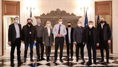 05.02.21 15:41Μητσοτάκης σε επιχειρηματίες της εστίασης: Μόνιμες οι μειώσεις φόρων, απαλλαγή από το ενοίκιο και τον Μάρτιο Επιχειρηματίες του κλάδου της εστίασης υποδέχθηκε στο Μέγαρο Μαξίμου ο Κυριάκος Μητσοτάκης.