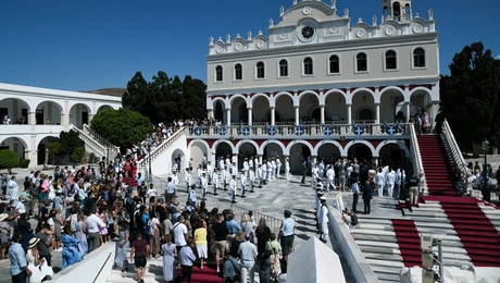 15.08.21 15:05Δεκαπενταύγουστος: Εορτασμός με κατάνυξη και αυστηρά μέτρα στη σκιά της πανδημίας Με κατάνυξη, αλλά και αυστηρά μέτρα κατά του κορονοϊού εορτάστηκε το «Πάσχα του καλοκαιριού» -...
