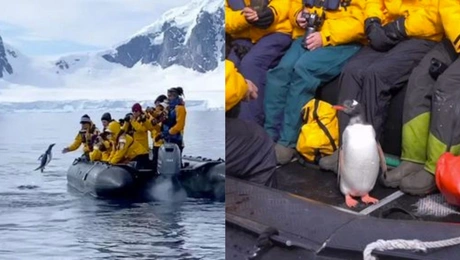 08.03.21 23:56Ανταρκτική: Πιγκουίνος ξεφεύγει από κοπάδι φαλαινών, πηδώντας σε τουριστικό σκάφος Ένας πιγκουίνος διέφυγε από κοπάδι πεινασμένων φαλαινών δολοφόνων, πηδώντας σε μια βάρκα γεμάτη...