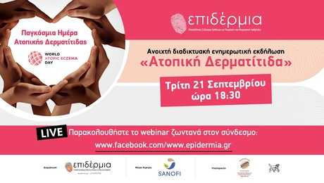 13.09.21 16:07Παγκόσμια Ημέρα Ατοπικής Δερματίτιδας 2021: Καμπάνια ενημέρωσης και ευαισθητοποίησης για την Ατοπική Δερματίτιδα από τον Πανελλήνιο Σύλλογο «Επιδέρμια» Με αφορμή την Παγκόσμια Ημέρα Ατοπικής Δερματίτιδας (14 Σεπτεμβρίου), o Πανελλήνιος Σύλλογος...