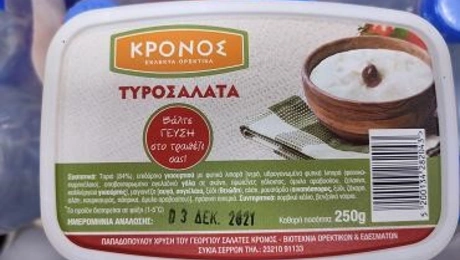 01.11.21 13:19ΕΦΕΤ: Ανακαλεί γνωστή τυροσαλάτα από τα ψυγεία - Περιέχει συστατικά σε μη επιτρεπόμενο όριο Ο ΕΦΕΤ απαίτησε την άμεση ανάκληση του συνόλου της συγκεκριμένης παρτίδας του εν λόγω προϊόντος και...