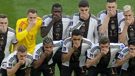 23.11.22 15:44Γερμανία κατά FIFA: Εκλεισαν τα στόματά τους οι παίκτες πριν τη σέντρα Σε μία προσπάθεια να αποδοκιμάσουν την απόφαση της FIFA να απαγορεύσει το περιβραχιόνιο - ουράνιο...