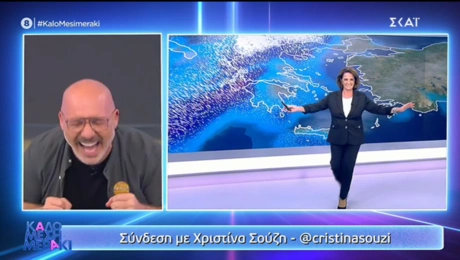 13.10.21 16:44Κακοκαιρία: Η Χριστίνα Σούζη χόρεψε μπάλλο - «Είμαι και μετεωρολόγος, έχω και χιούμορ» Στους ρυθμούς του... νέου κύματος κακοκαιρίας χόρεψε η μετεωρολόγος του ΣΚΑΪ, Χριστίνα Σούζη στην...