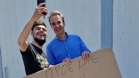 02.06.22 16:49«Πρόεδρε θέλω selfie»: Ζήτησε φωτογραφία με τον Μητσοτάκη κρατώντας πλακάτ Με την φράση «Ό,τι πει ο Αντώνης», ο Κυριάκος Μητσοτάκης ανέβασε στον λογαριασμό του στο Instagram...