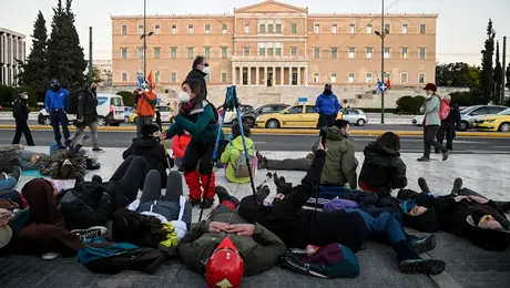 09.02.22 19:59Ερμής Θεοχαρόπουλος: Διαμαρτυρία από ορειβάτες στο Σύνταγμα για την ελλιπή διάσωση στα βουνά Κουβαλώντας ειδικό εξοπλισμό, ορειβάτες... ξάπλωσαν στην πλατεία Συντάγματος, αναπαριστώντας τους...